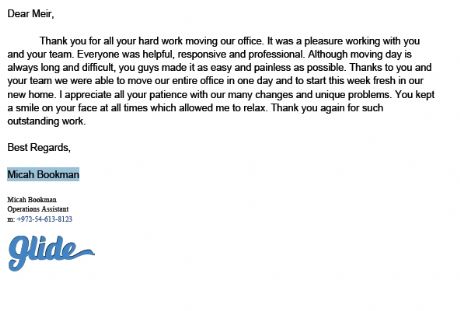 רציתי להודות על השרות הטוב שהענקתם למשפחתי ולי.